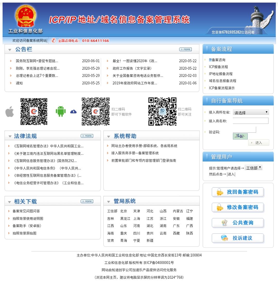 管局备案网站改版后,原来的www.beian.miit.gov.cn已无法访问,建议备案网站将页面底部备案链接指向更改为https://beian.miit.gov.cn